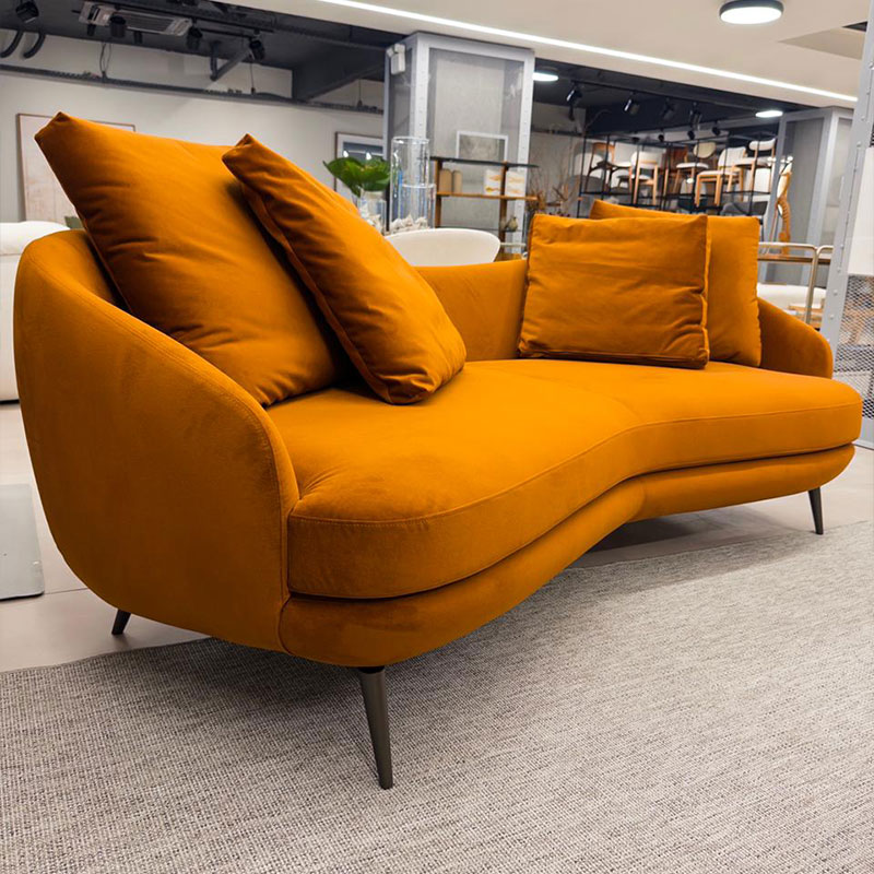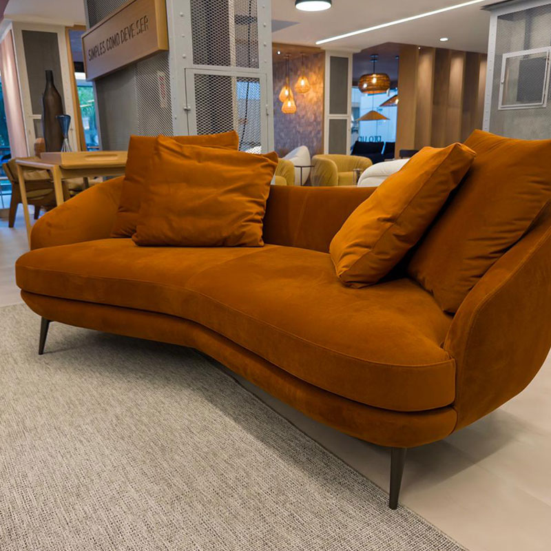 O sofá Cod383 tem curvas emotivas que evocam fluidez e delicadeza como se assumisse uma função poética. É uma peça que encanta pela silhueta escultural e eleva todo o cenário ao redor. O assento aéreo e o encosto abaulado, levemente angulado, do Cod383 criam uma composição singular que combina ergonomia e beleza, enquanto os módulos curvos e a chaise avulsa permitem composições orgânicas e envolventes.